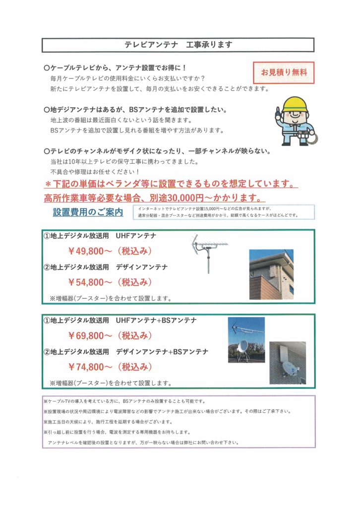 顔見知りの方には、テレビが映らない、またBSのアンテナ設置などを依頼される場合があります。